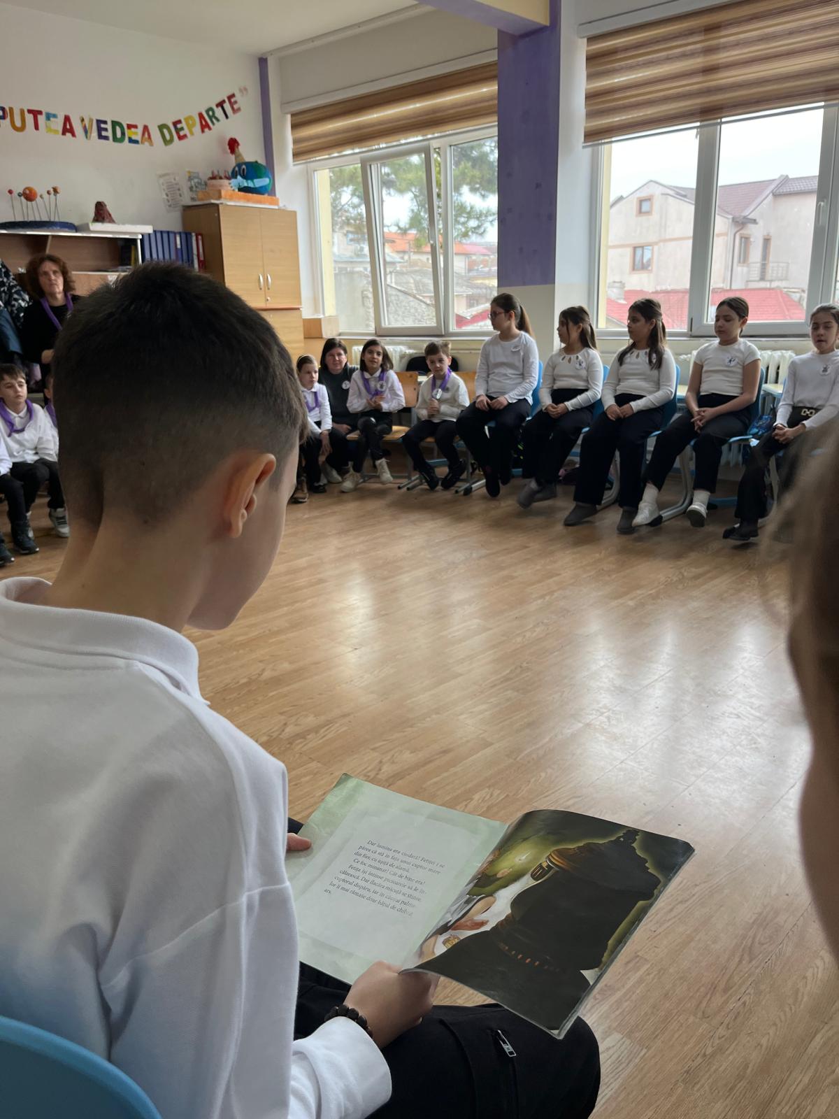 \ Am citit azi cu elevi ai claselor a IV-a A, B, C şi P A, împreună cu doamnele lor învăţătoare Belu Cristina, Nicolin Andreia, Elmi Ersin şi Zamfir Liliana.